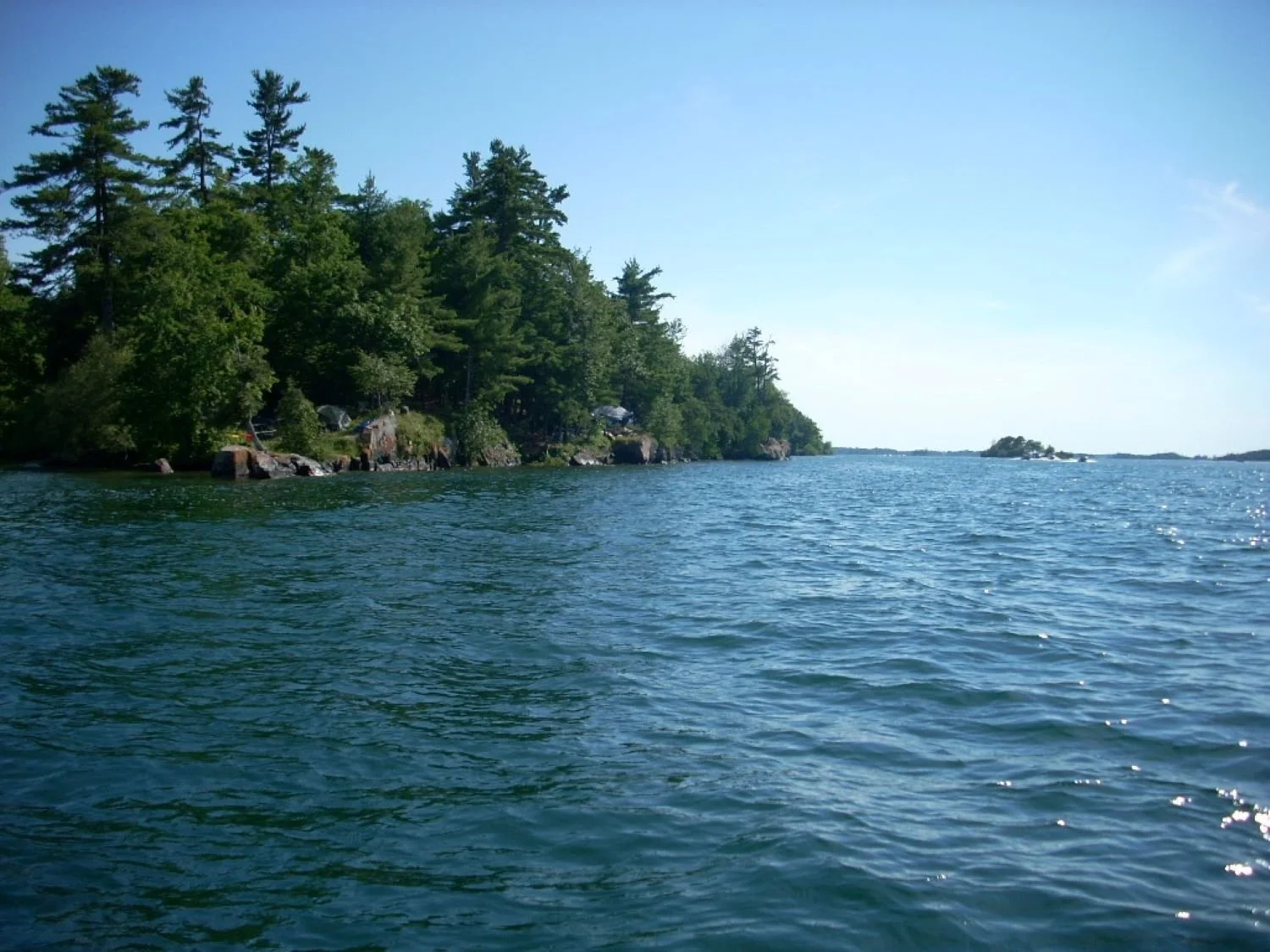 This is a view of our campsites on Wellesley Island from the little motor boat we used to putt around the Saint Lawrence River in New York. They were the most magical campsites we ever had..
